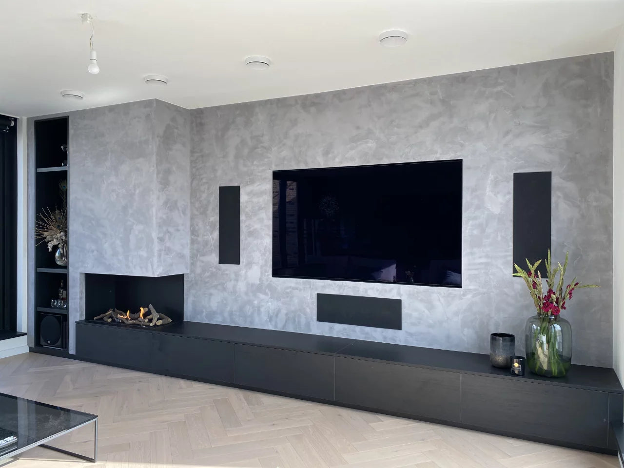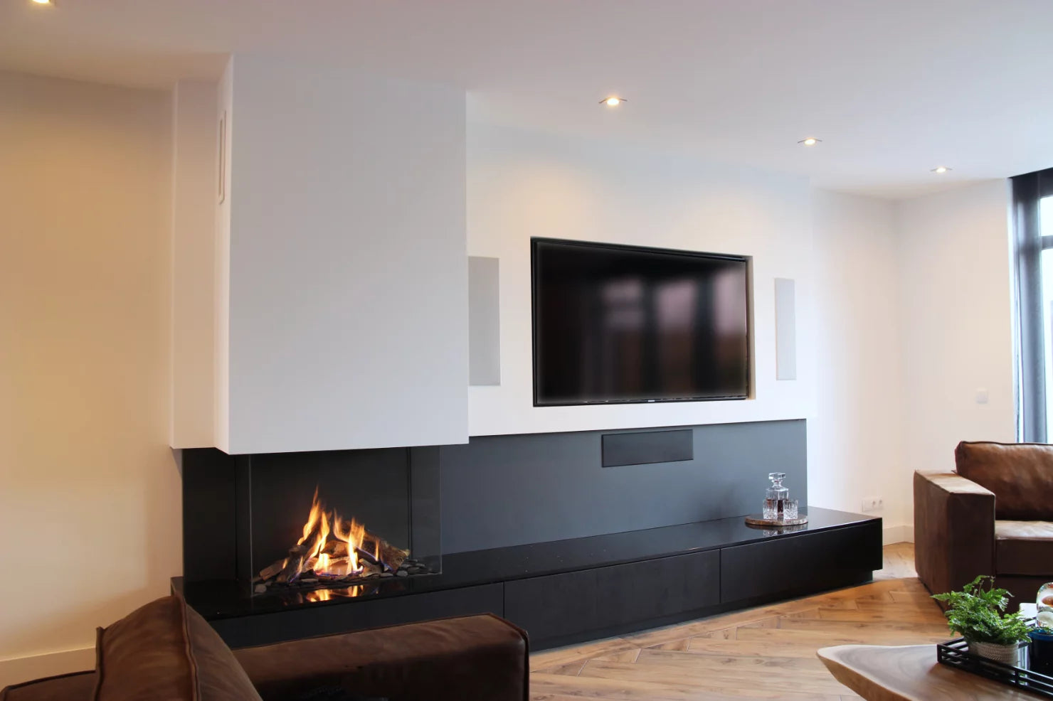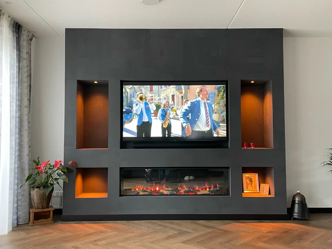 - Maatwerk cinewalls met geïntegreerde haard en/of audio