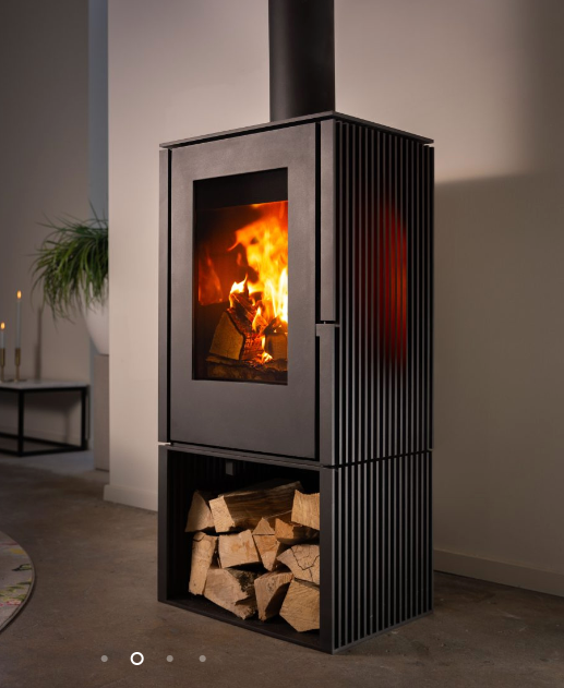 Stijlvolle, 3-zijdige houtkachel met ruim zicht op het vuur vanuit elke hoek. De groeven aan de zijkanten verbeteren de warmteverdeling en zorgen voor een sfeervolle gloed. Het HR-keramische glas met speciale infraroodcoating reflecteert warmte terug de kachel in voor een efficiëntere verbranding.